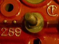 On aluminum parts such as the timing cover or 2100 and 4100 carburetors you will find another clock face casting. This casting is different from the clock dial on iron parts. The dial has 10 positions which indicate a date of manufacture.
